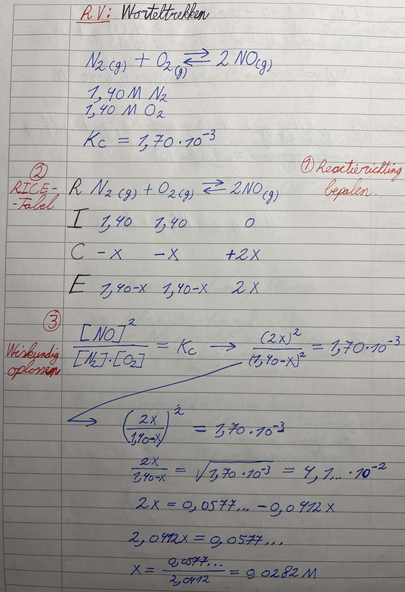 - Reactierichting bepalen (Qc) [Als er niks aanwezig is van de producten, zal de reactie altijd naar rechts verlopen]